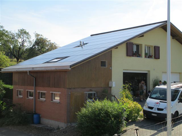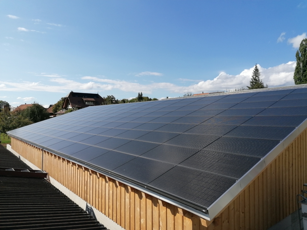 Grossflächige Photovoltaikanlage 17 kWh, realisiert durch Messerli Holzbau AG