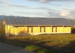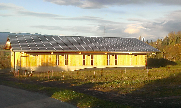 Grossflächige Photovoltaikanlage Ost / West, realisiert durch Messerli Holzbau AG