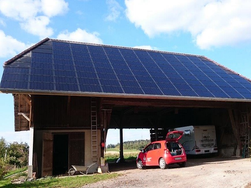 Mega Slate Meyer Burger Anlage 30kWp, realisiert durch Messerli Holzbau AG