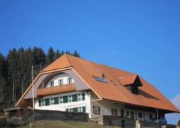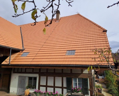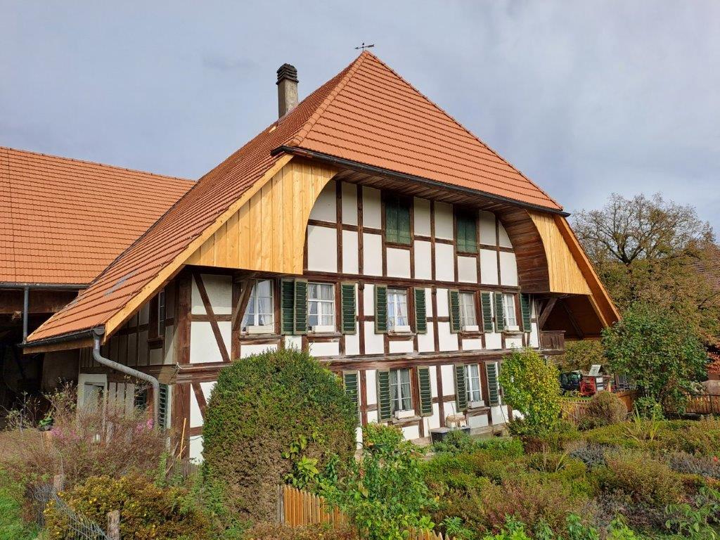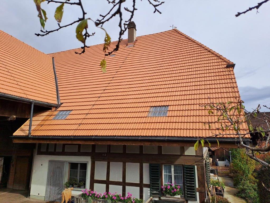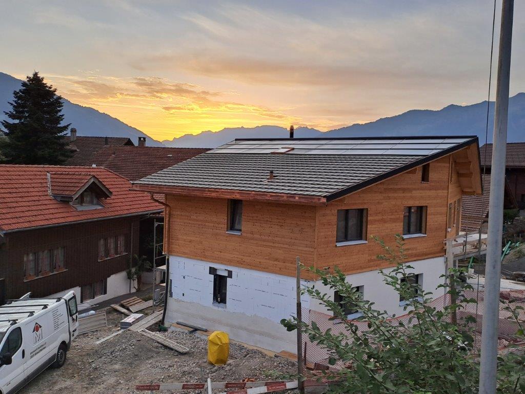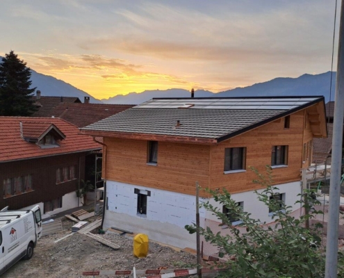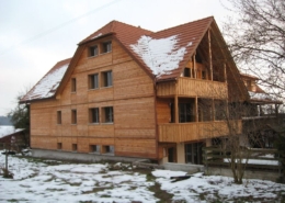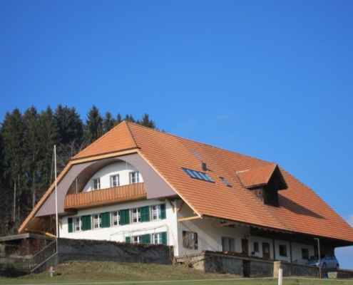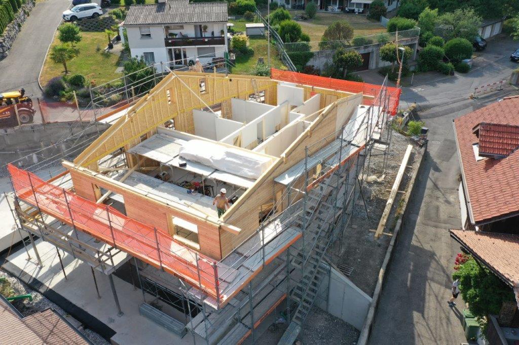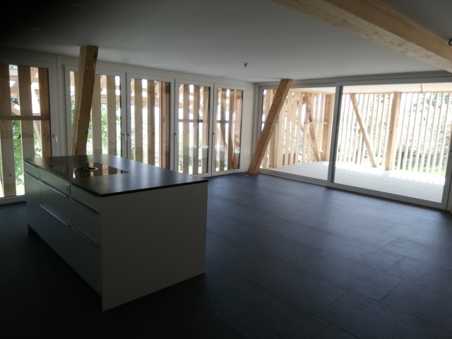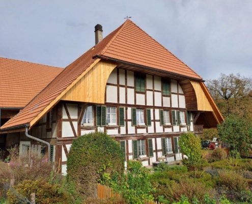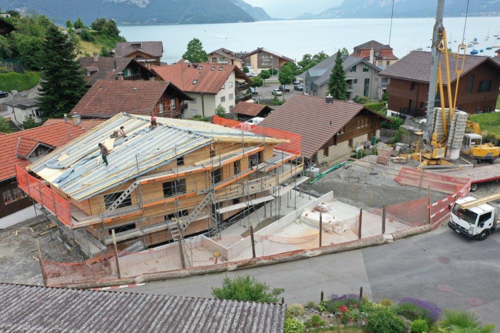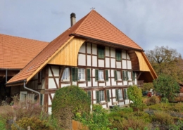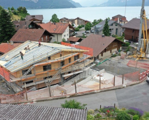 MFH in Suberg Holzbauarbeiten mit Sicht-Dachstuhl, Dachschalung und Dachisolation, realisiert durch Messerli Holzbau AG