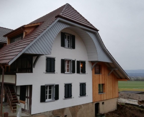 Fassadenbau, Innenausbau. Schöne Zimmerei- und Schreinerarbeiten, realisiert durch Messerli Holzbau AG